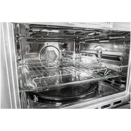 De Inventum combi oven IMC6150RK heeft een inhoud van 50 liter. Naast de 5 magnetronstanden heeft de oven 3 combinatiestanden en 13 automatische kookprogramma's. De combinatiestanden bieden je een legio aan mogelijkheden om je gerechten te bereiden. Met zijn verzinkbare draaiknoppen en drukknoppen is de combi oven gemakkelijk te bedienen en heeft hij ee...